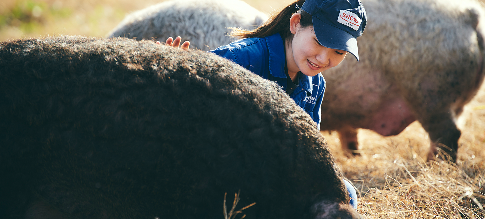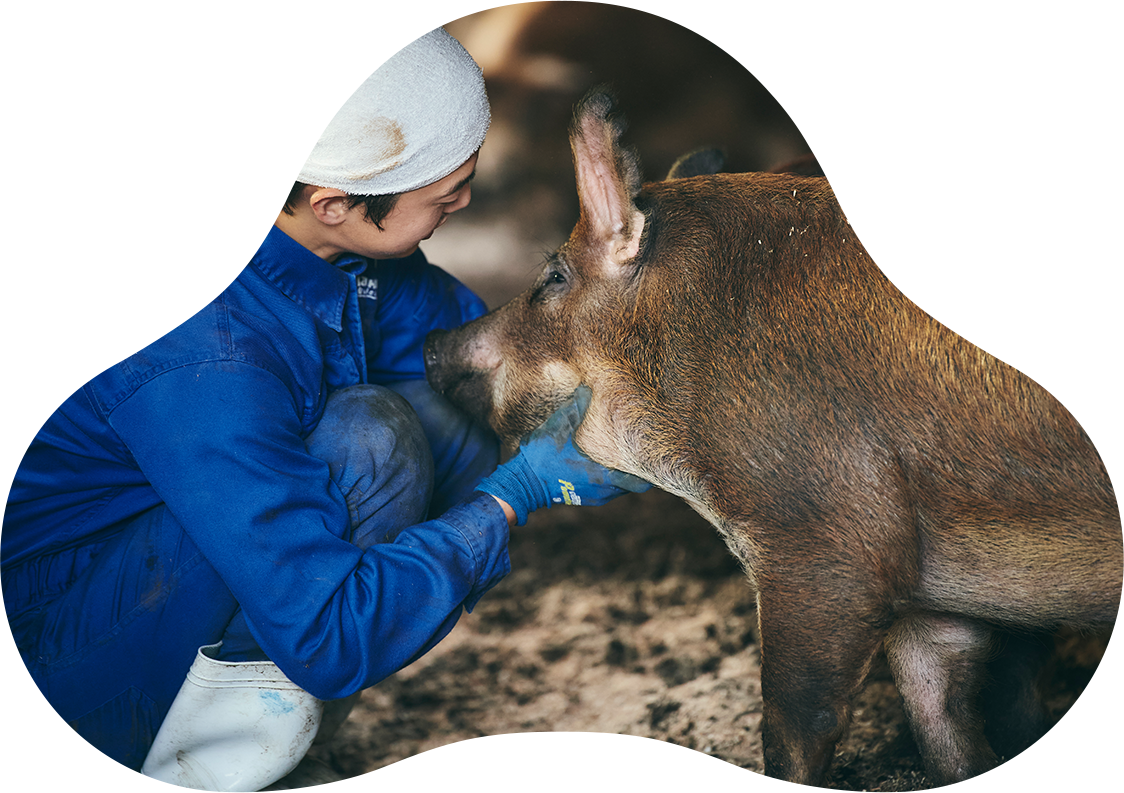同じ豚舎、同じ飼料、同じ飼育環境で育てていても、一頭一頭のコンディションはさまざまで、体調管理を欠かすことはできません。長く豚の体に触れてきたからこそわかる、数値では測れない健康状態を毎日チェック、自社牧場だからこそ目の行き届く徹底した管理を行っています。