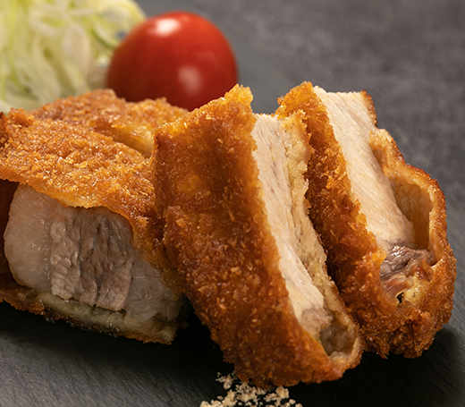 贅豚ならではの甘みのある背脂、そして柔らかな食感が味わえる極上のとんかつです。ほどよい歯ごたえも楽しむ、少し厚めのカットがおすすめです。