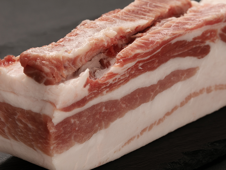 日本のブランド豚の多くは「三元豚」であり、ほぼ飼料や飼育環境の違いでブランド登録されています。豚肉の味が、ほぼ8割、品種によって決まるといわれている中、「贅豚」は、どこまでもおいしさを追求。マンガリッツァ豚とデュロック豚を掛け合わせて生まれた、そもそもの品種から異なる、真のブランド豚といえます。